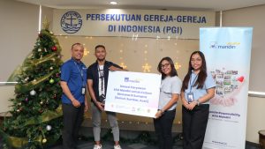 JAKARTA – Perwakilan karyawan PT AXA Mandiri Financial Services (AXA Mandiri) menyerahkan bantuan untuk korban bencana Sumatra kepada lima badan amal berbasis agama di Jakarta, Senin (29/12/2025). AXA Mandiri bersama karyawannya melakukan penggalangan dana sebagai bentuk kepedulian terhadap korban bencana di Sumatera.
